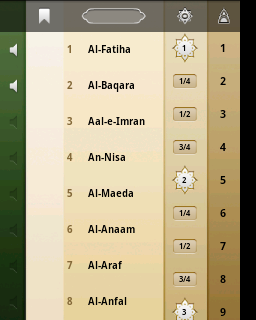 fiturnya di lengkapi pemutaran audio suara, repeat functions, unlimited bookmarks, search, kontrol navigasi yang sangat baik, beberapa terjemahan dan recite